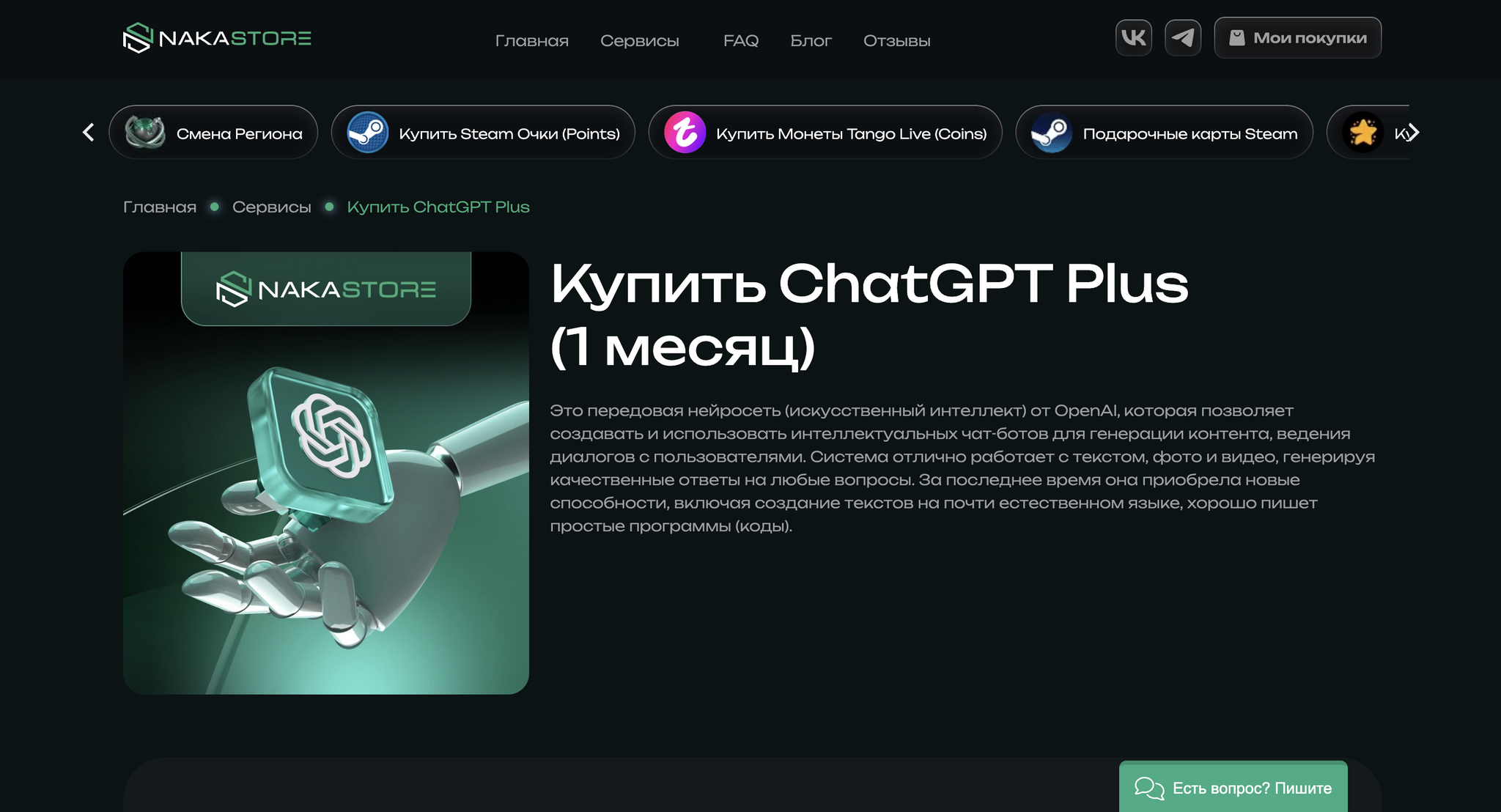 Nakastore выделяется тем, что предлагает несколько способов оплатить подписку Чат GPT: