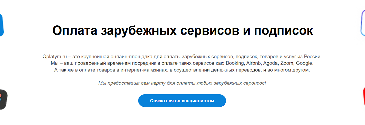 1. Oplatym — безопасная оплата зарубежных сервисов с картой зарубежного банка