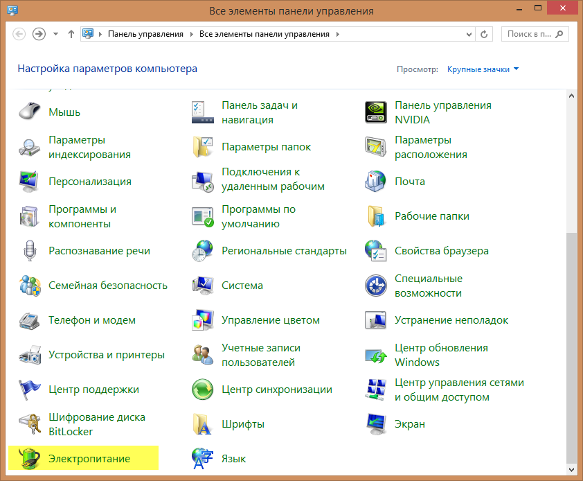 Скрины из Windows 8.1. В семерке Электропитание то же.