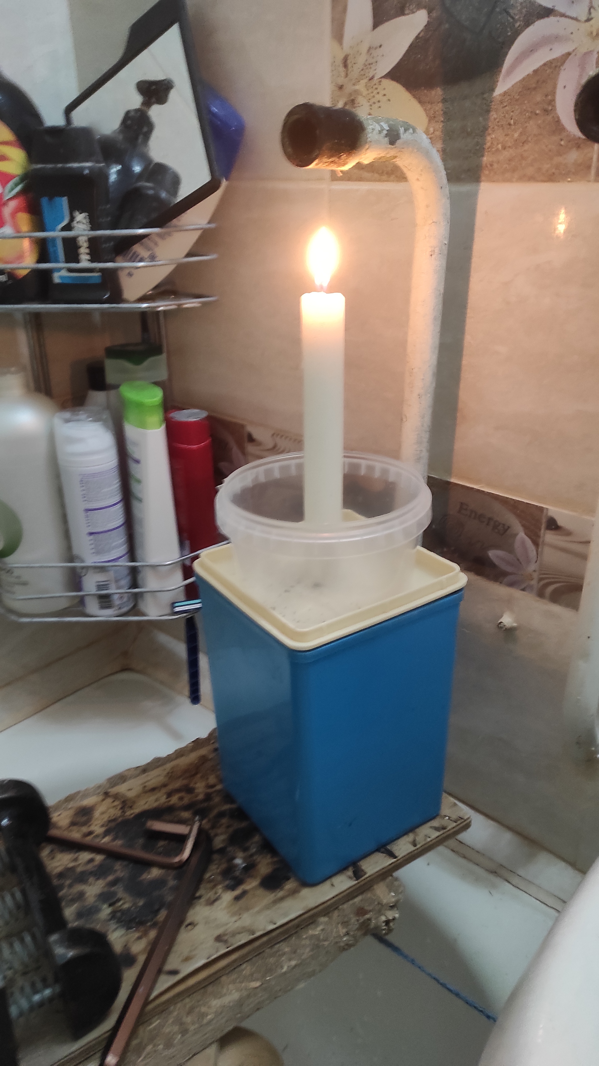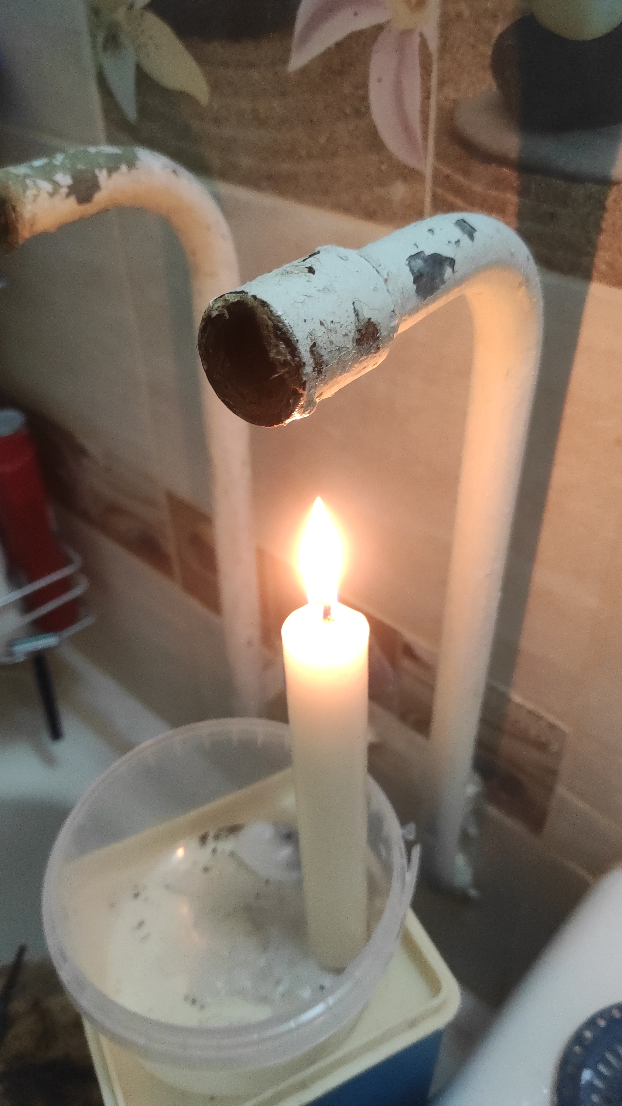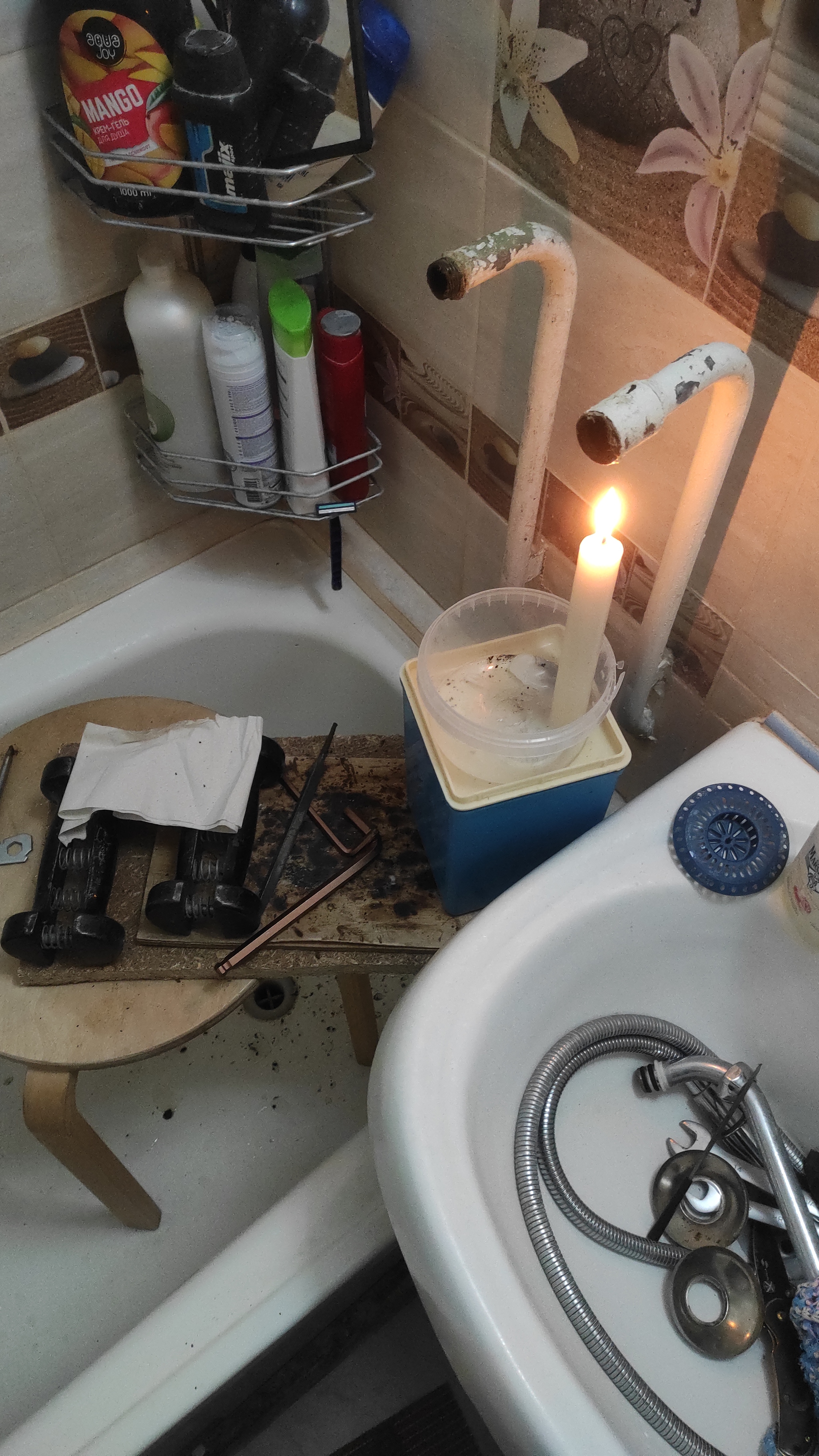 Менял недавно смеситель в ванной. В комплекте с новым шли новые эксцентрики, решил заменить старые. Оказалось, что эксцентрик холодной воды намертво прикипел и вдобавок отломился, оставив кусок в муфте. Пробовал WD40, вставлять и крутить шестигранники, высверливать, ничего не помогло. Муфту так же можно заменить, но выяснилось, что и она прикипела к трубе. Вспомнил, что где-то на Пикабу читал, как чувак нагрел трубу свечой, чтобы открутить. Так и сделал, и муфта легко повернулась галкой. Собственно вот