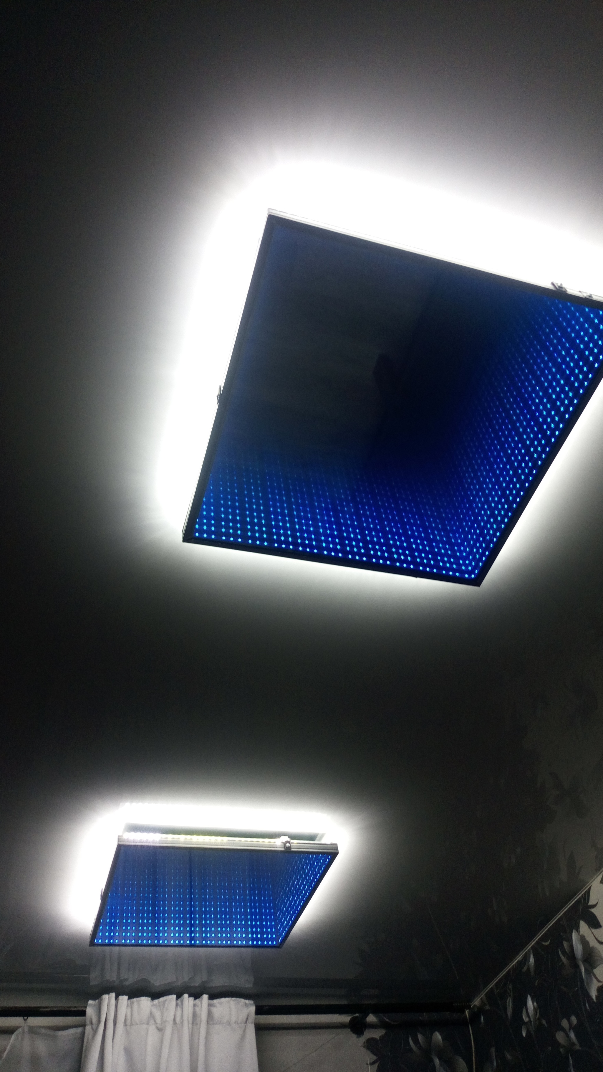 Фото с моего старенького телефона не передает глубины и яркости, смотрится реально здорово. Все получилось даже лучше чем планировал, света хватает, хайтек, ровный яркий свет, все адаптируемо по палитре.