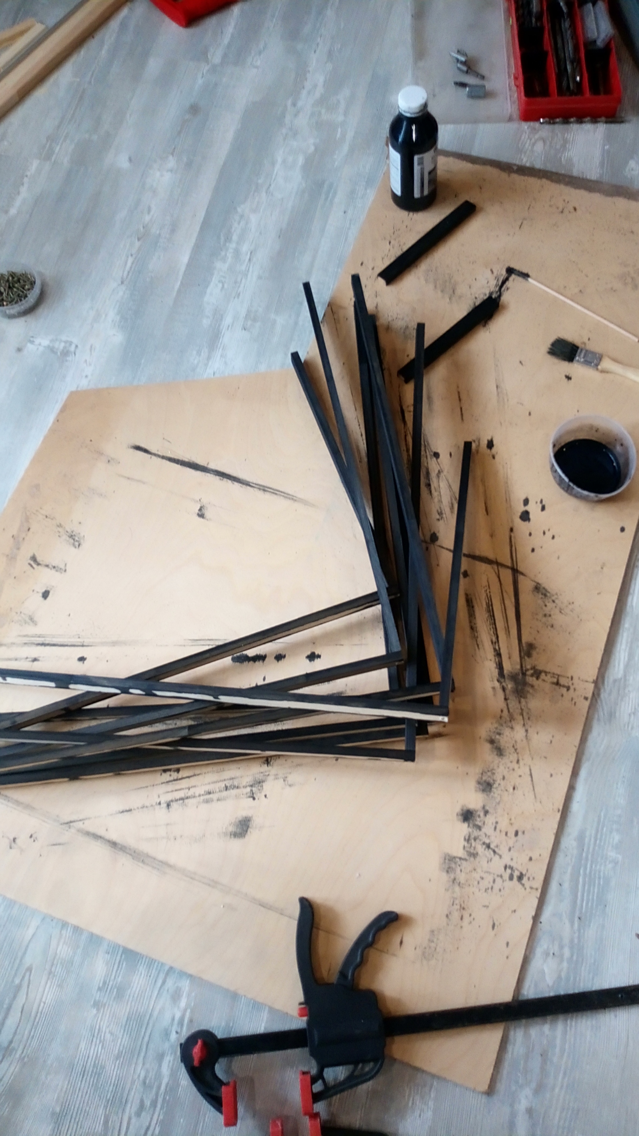Рейки окрашены обычной грунтовкой с черным колером