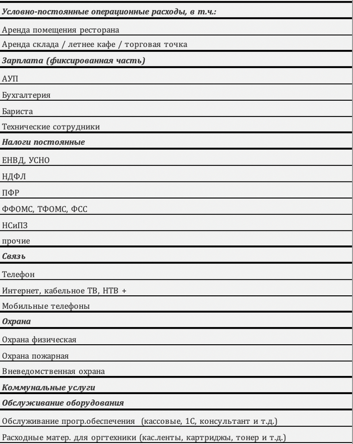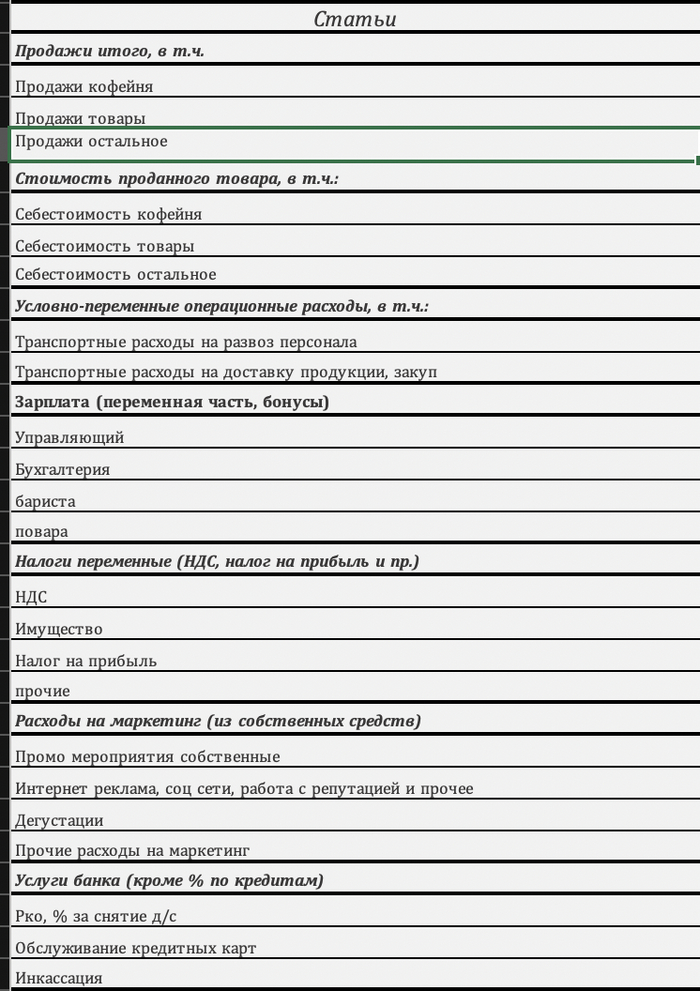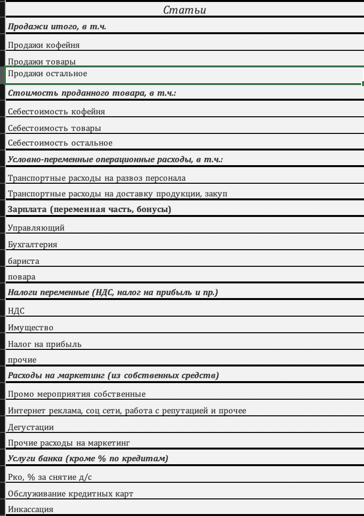 Ниже укажу основные статьи расходов, которые учитываю в этой таблице: