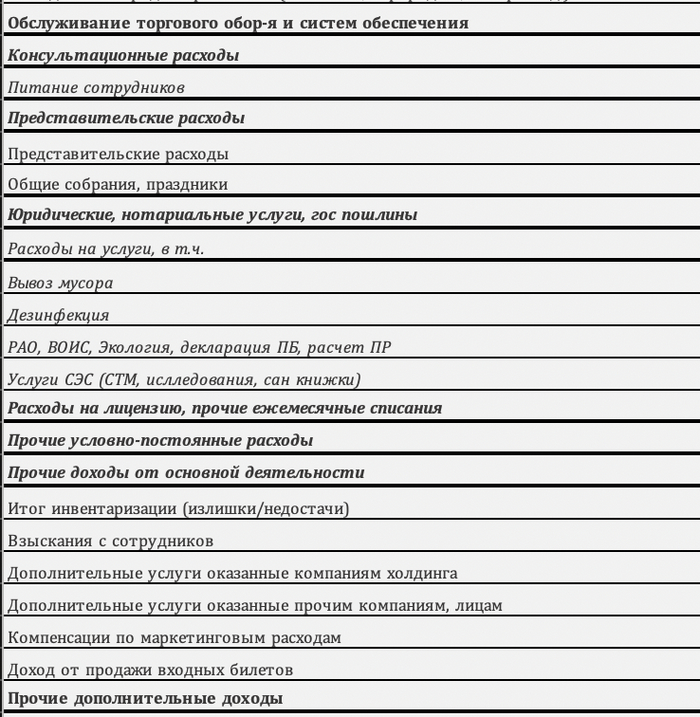 Часть этих расходов рассчитываются по формулам, часть вводится руками.