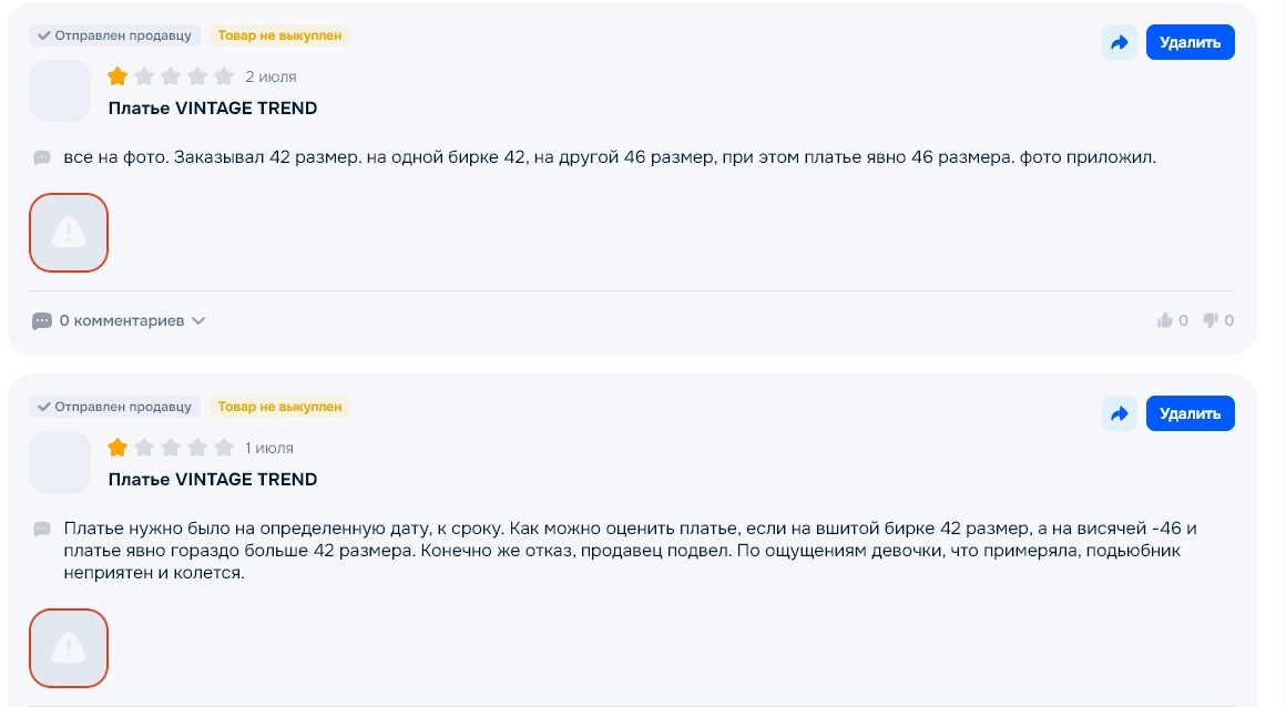 Заказали дочке платье на выпускной, несколько вариантов на примерку. Заказывал 42 размер, но одно платье было гораздо больше. Начал упаковывать обратно и увидел, что на бирках разная информация о размере - на одной бирке 42, на другой 46. Ну не велика беда, все равно отказ из-за несоответствия размера. Но удивил ОЗОН, который по сути не дает опубликовать отзыв так, чтобы его увидели другие покупатели и учитывали такой подвох при заказе.