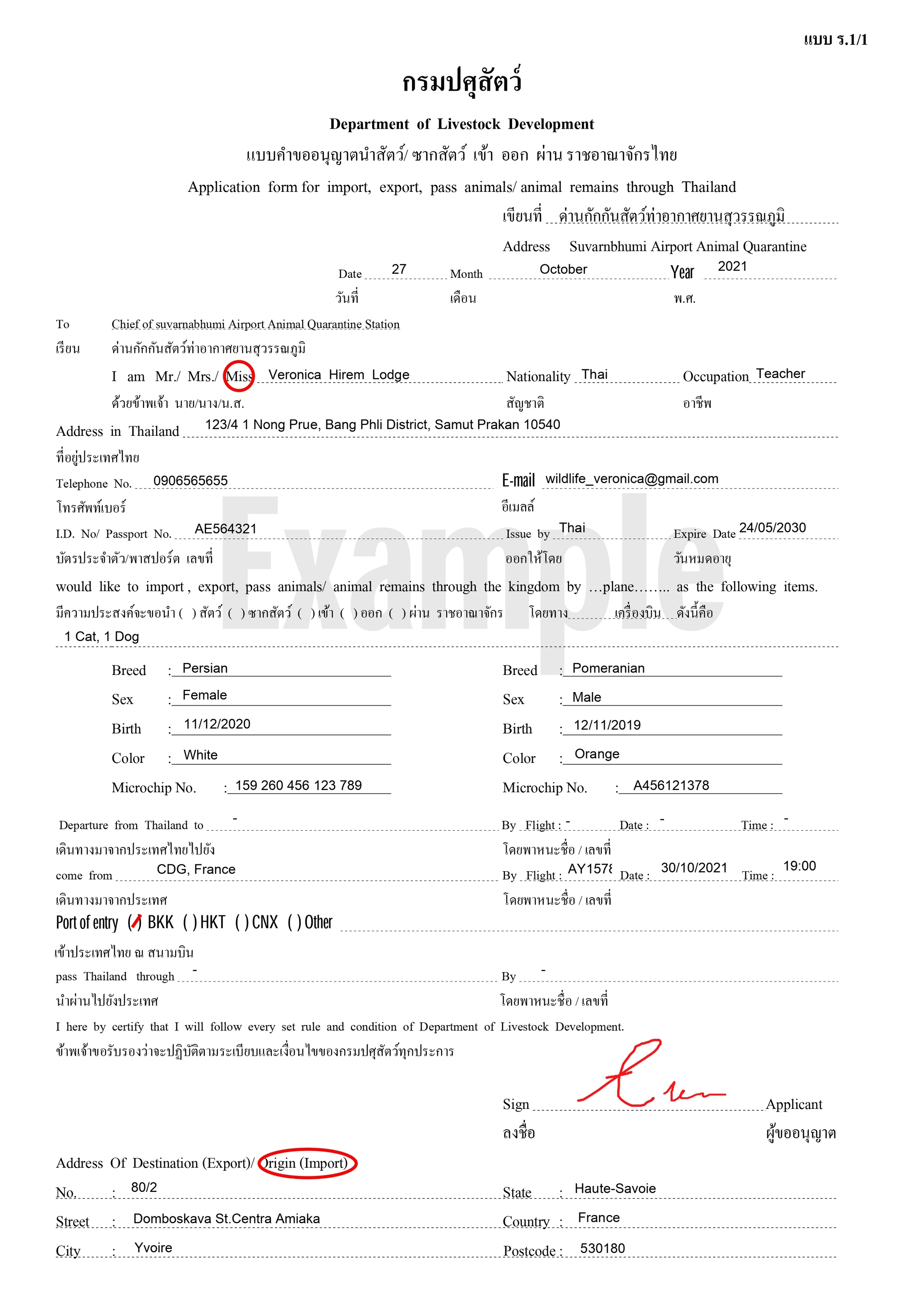 Я летела в Бангкок, поэтому отправляла запрос в вет. службу Бангкока.