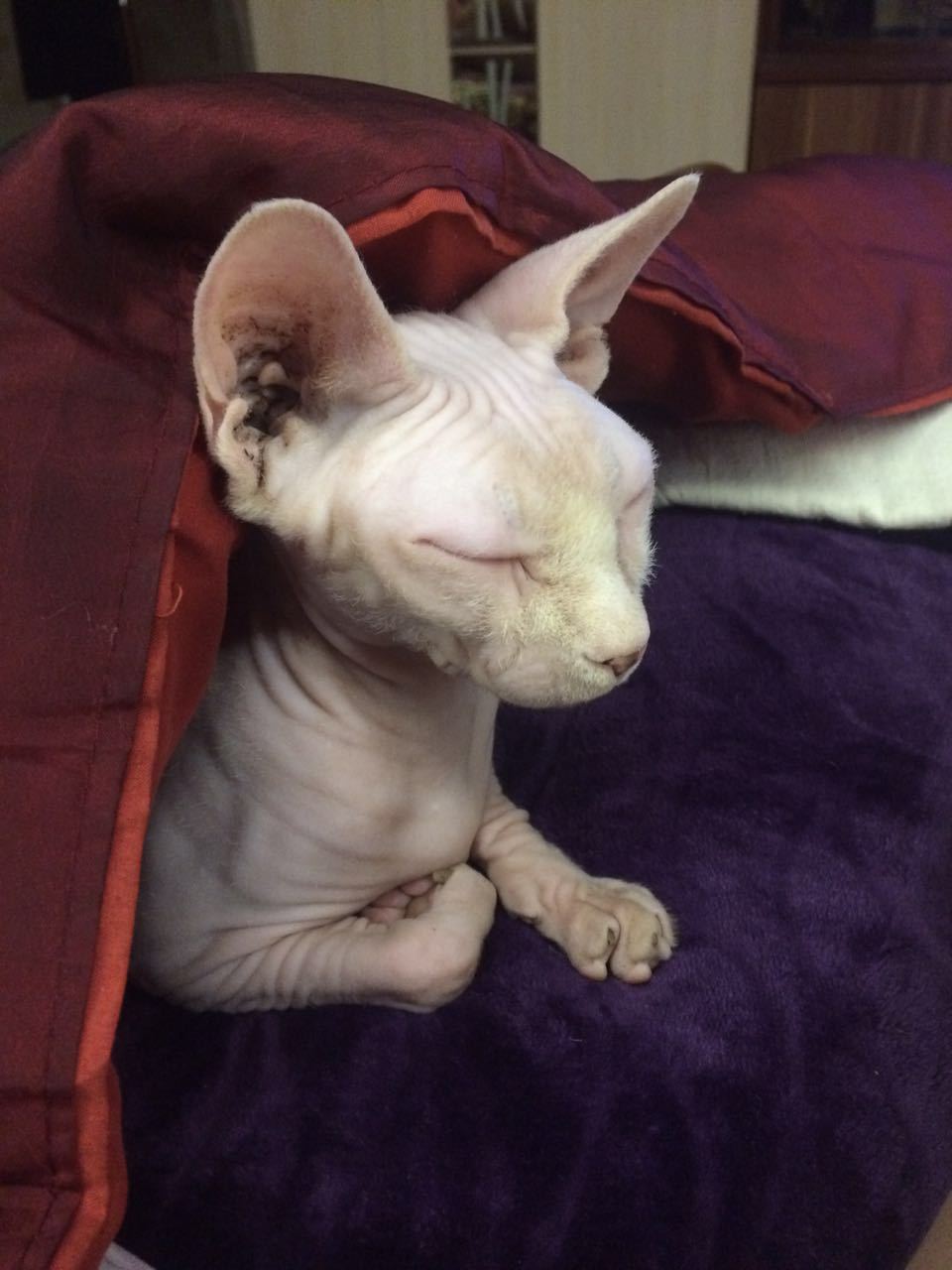 8 pornoground Как пережить холода. Лайфхак от сфинкса. 9 лет назад И зимой и летом спит исключительно под одеялом или пледом) при этом адски потеет и начинает пахнуть как несвежие носки) [моё] Холодно Кот Сфинкс Фото Авторский пост Длиннопост