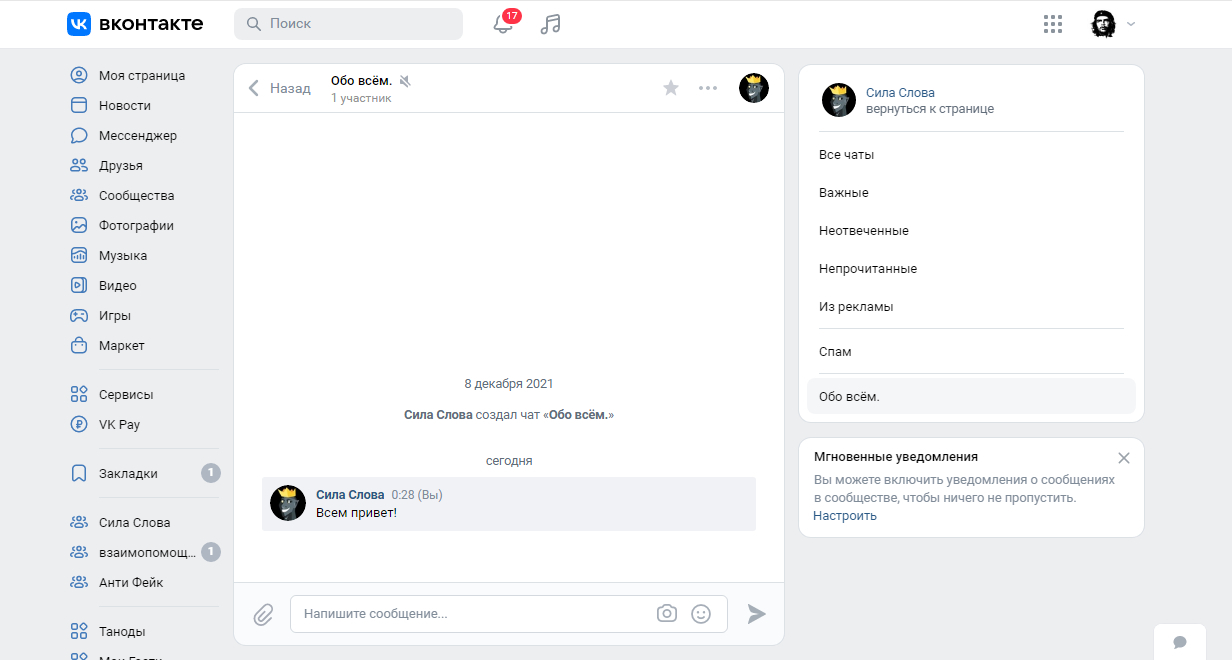 Как писать в чате от имени сообщества вк