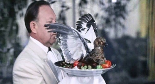 Птицу подавали на стол как бы в сидячем положении на гнезде, прикрепив голову с помощью палки. Лебедь был самым дорогим. Его подавали, украсив гирляндами и короной, на серебряном или золотом блюде, с распущенными крыльями, с выгнутой назад шеей и гордо выпрямленной головой.