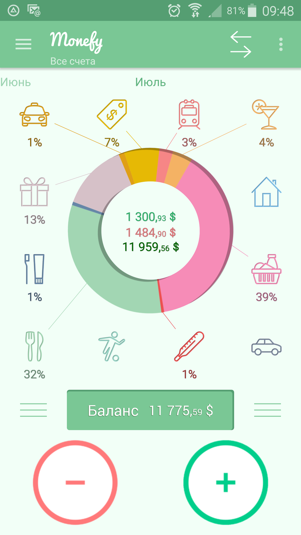 Осталось: сколько денег осталось на траты с учетом уже потраченных