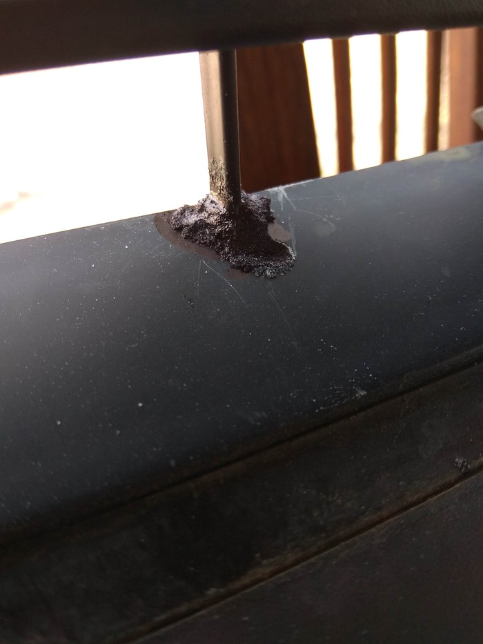 Так как задача была починить, не до супер красоты, просто закрасил перманентным маркером. При желании можно зачистить наждачкой/покрасить.