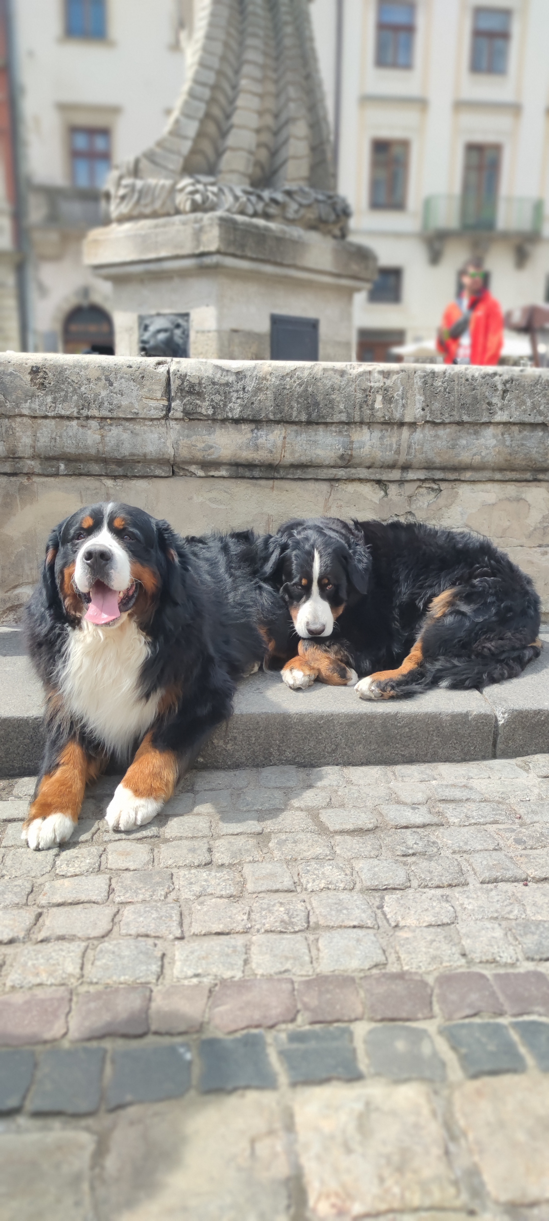 В нашу последнюю поездку во Львов наткнулись на этих милах. Хозяева просто вывели их погулять, и любой мог погладить и сфотографироваться.