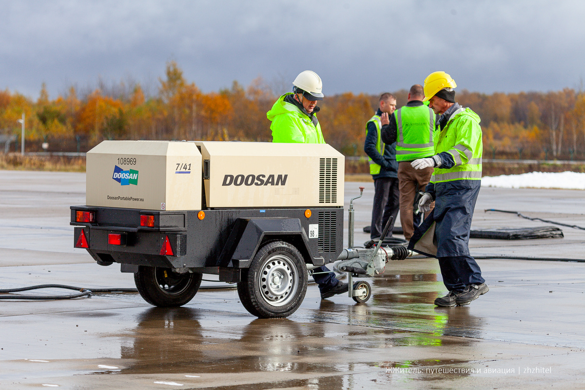 Так выглядит процесс со стороны. При необходимости можно поднять воздушное судно целиком, в этот раз необходимости в этом не было.