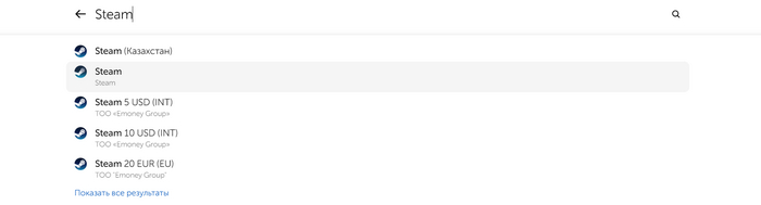 Переходим в поиск и вписываем «Steam». Здесь есть несколько вариантов, но нас интересует только второй.