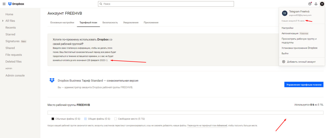 💁🏻♂️ DropBox — это хранилище информации, позволяет сохранять данные в виртуальном облаке, доступ к сохраненным данным можно получить с любого другого устройства посредством входа в кабинет » FREEHVB расскажет вам: Как получить 5ТБ от DropBox на 30 дней?