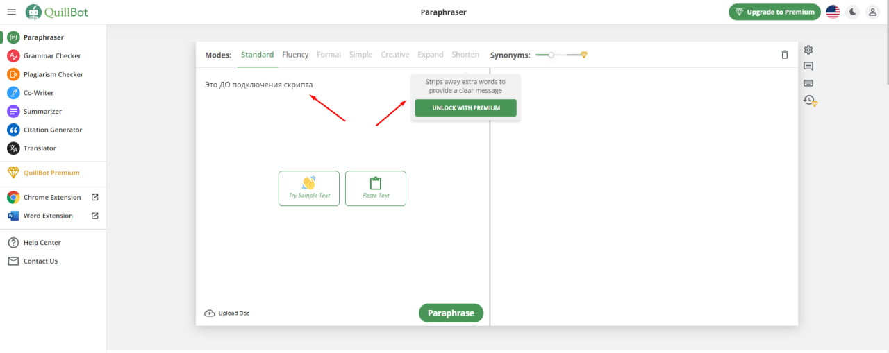 Данный метод предоставляет бесплатный доступ к платным функциям QuillBot Premium, но некоторые из услуг Premium-класса работают кривовато, к примеру платный режим формальный, короткий, но в общем и целом доступа, который вы получаете - более чем достаточно для повседневного использования.