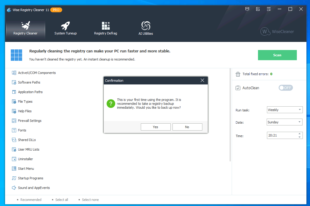 💁🏻‍♂️ Wise Registry Cleaner Pro 11 — это комплексное решение для очистки реестра , которое предлагает комплексные решения большинства проблем, вызывающих медленную работу компьютера. Он включает в себя быстрый сканер для проверки реестра Windows и поиска неправильных или устаревших файлов, которые можно исправить, чтобы поддерживать реестр Windows в отличной форме. Кроме того, он может создать резервную копию реестра перед очисткой, чтобы обеспечить его безопасное восстановление.