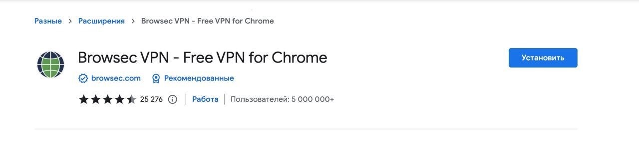 Для десктоп версий доступ к «ChatGPT на русском» нам поможет получить браузерное расширение Browsec. Установка проста и не займет много времени.