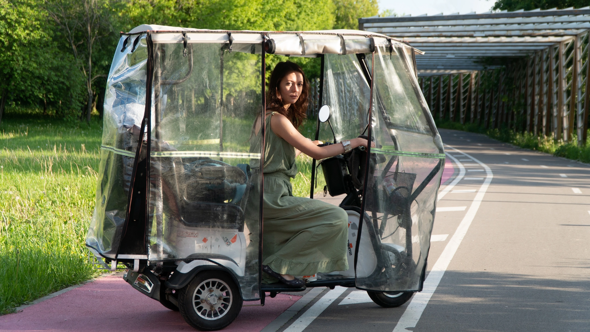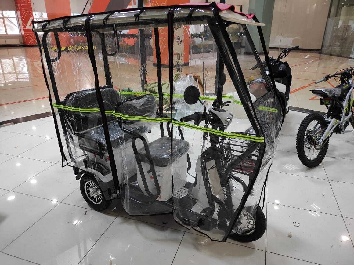 Я на моем электротрайке Minibus M01 (что-то вроде рутрайк экипаж) фару случайно коротнул. Светодиодная часть фары была пару лет назад вынесена на внешний кабель и закреплена спереди передней корзины (изначально то фара от руля била в окно и отражалась мне в глаза), но, кабель питания через год коротнуло, когда светодиодный блок оторвало от корзины.