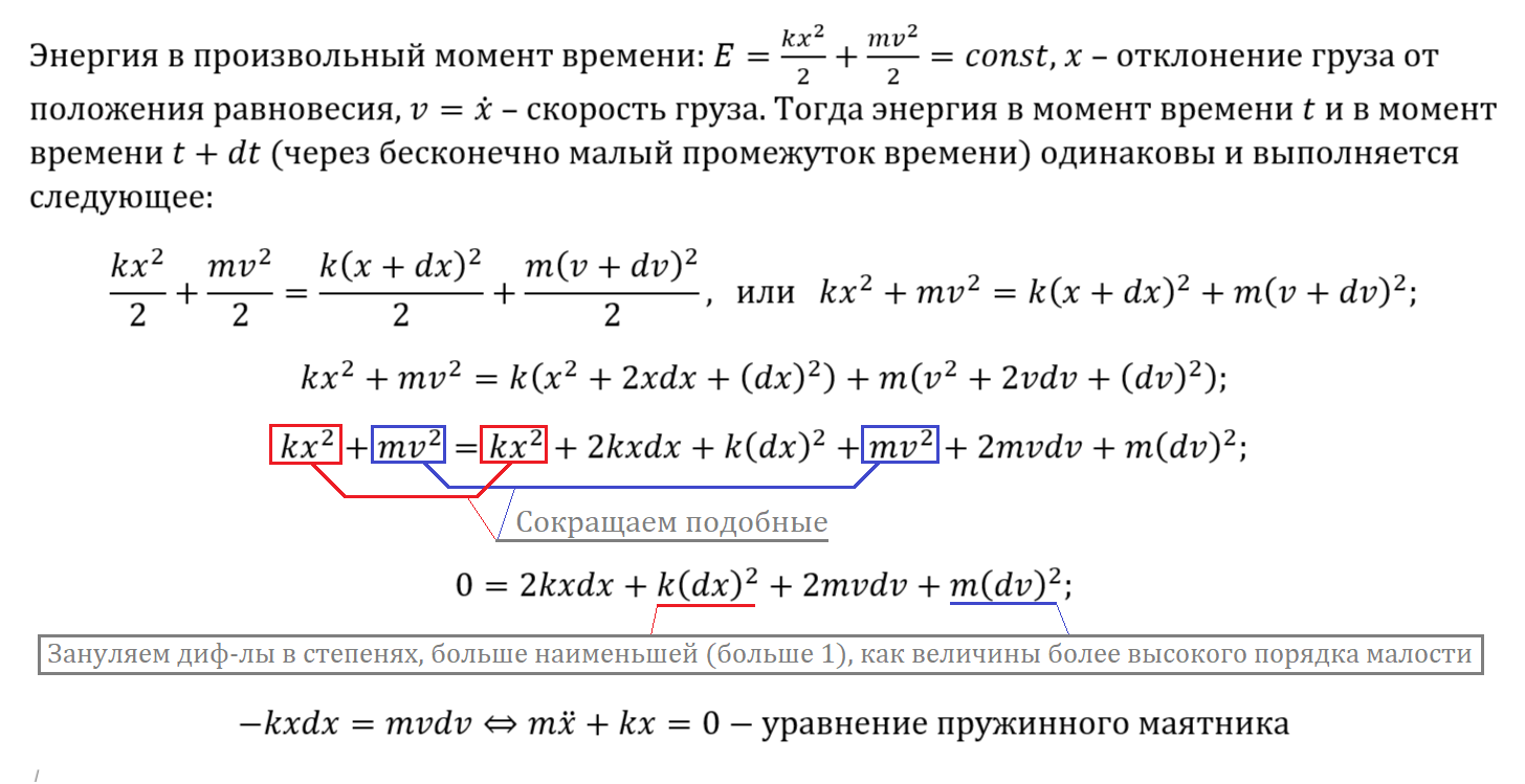 А еще можно сокращать дифференциалы более высокого порядка малости, что я отражу на примере закона сохранения энергии для пружинного маятника: