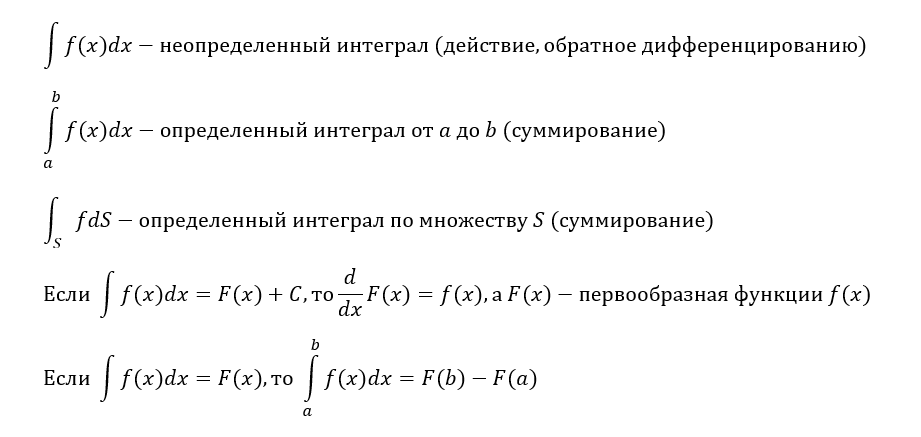 На картинках вы могли уже заметить различные способы записи интеграла. Поэтому вот обозначения: