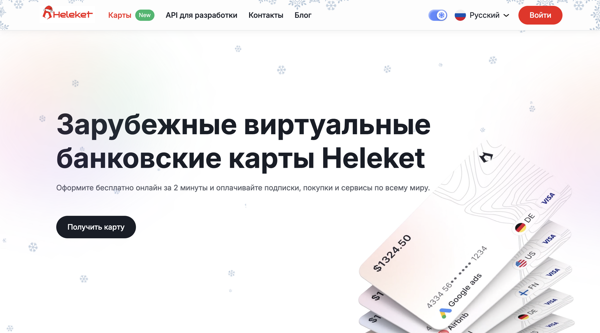 Данный сервис предоставляет виртуальные карты Visa и Mastercard, которые можно привязать к Apple Pay и Google Pay для простого контроля расходов на зарубежные сервисы. Основное назначение карт — решение двух ключевых задач: оплата различных онлайн-подписок и управление рекламными бюджетами в популярных платформах.