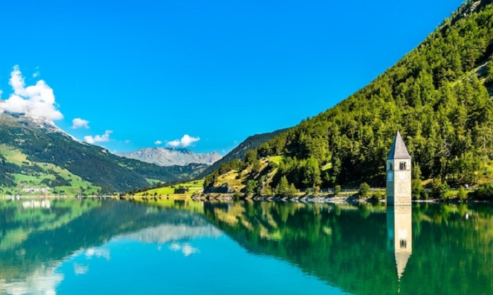Каменная колокольня, среди глубоководного озера Резия в живописнейшем районе Италии, туристов приводит в замешательство, а у местных жителей вызывает ностальгию и восхищение, ведь она находится в воде более чем 70 лет. Старинный архитектурный объект, возведенный в XIV веке, давно оброс легендами, а то что он оказался в воде и вовсе превратило в особенное место, привлекающее любителей всего таинственного и неизведанного.