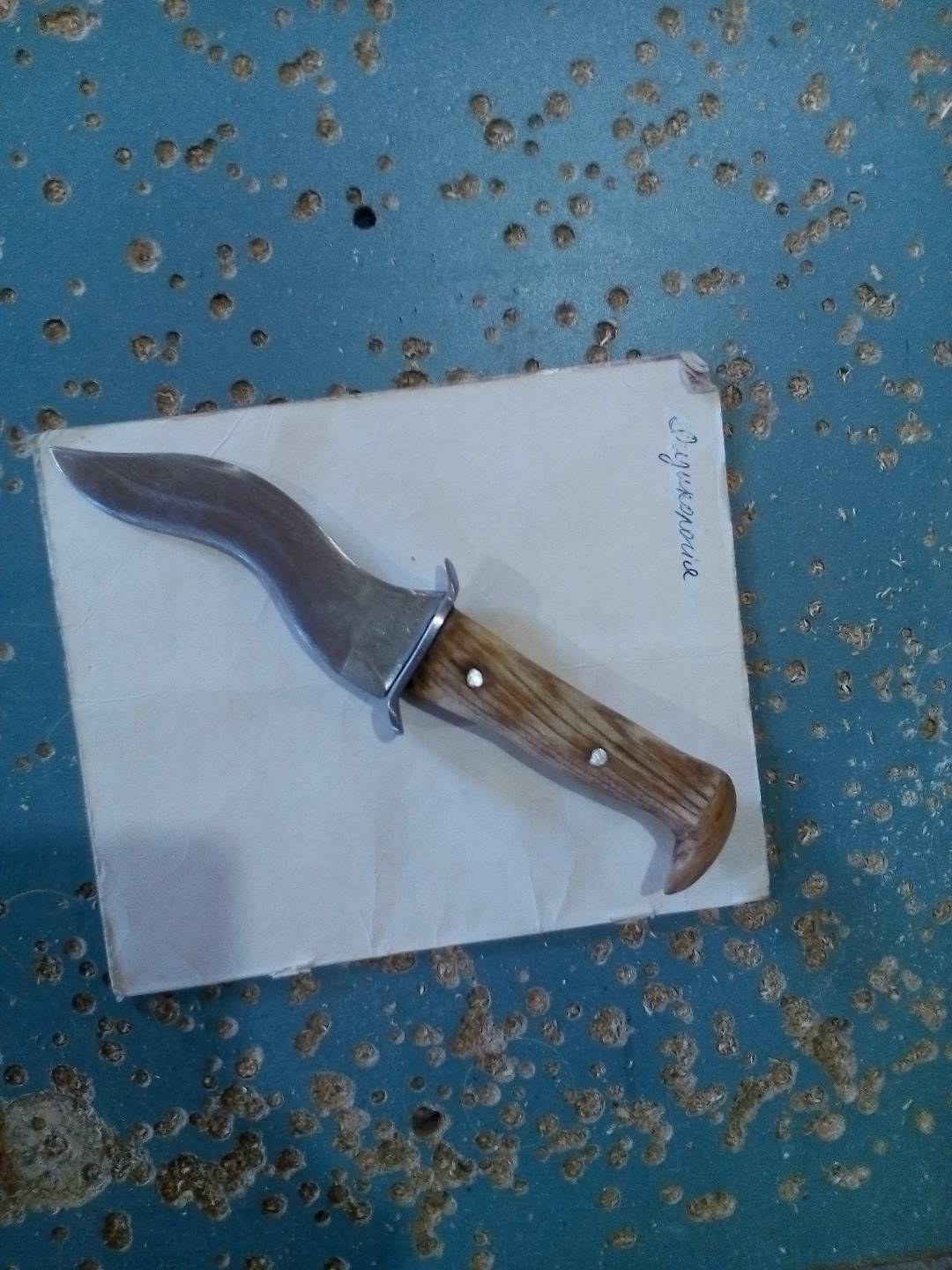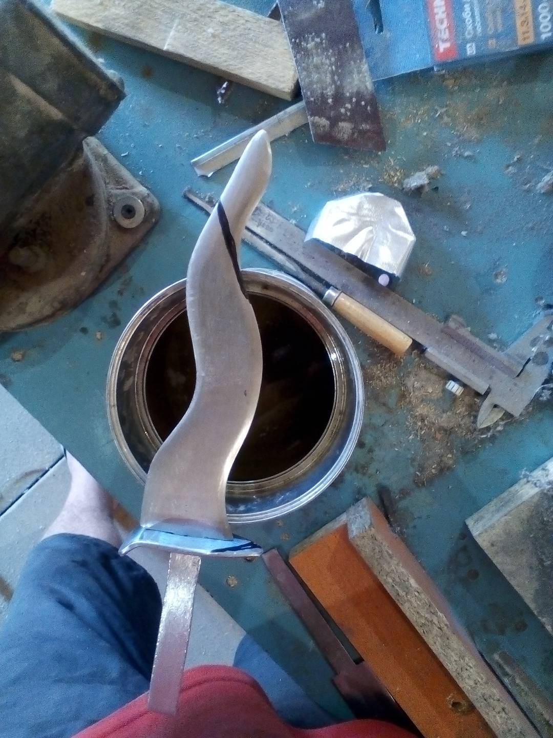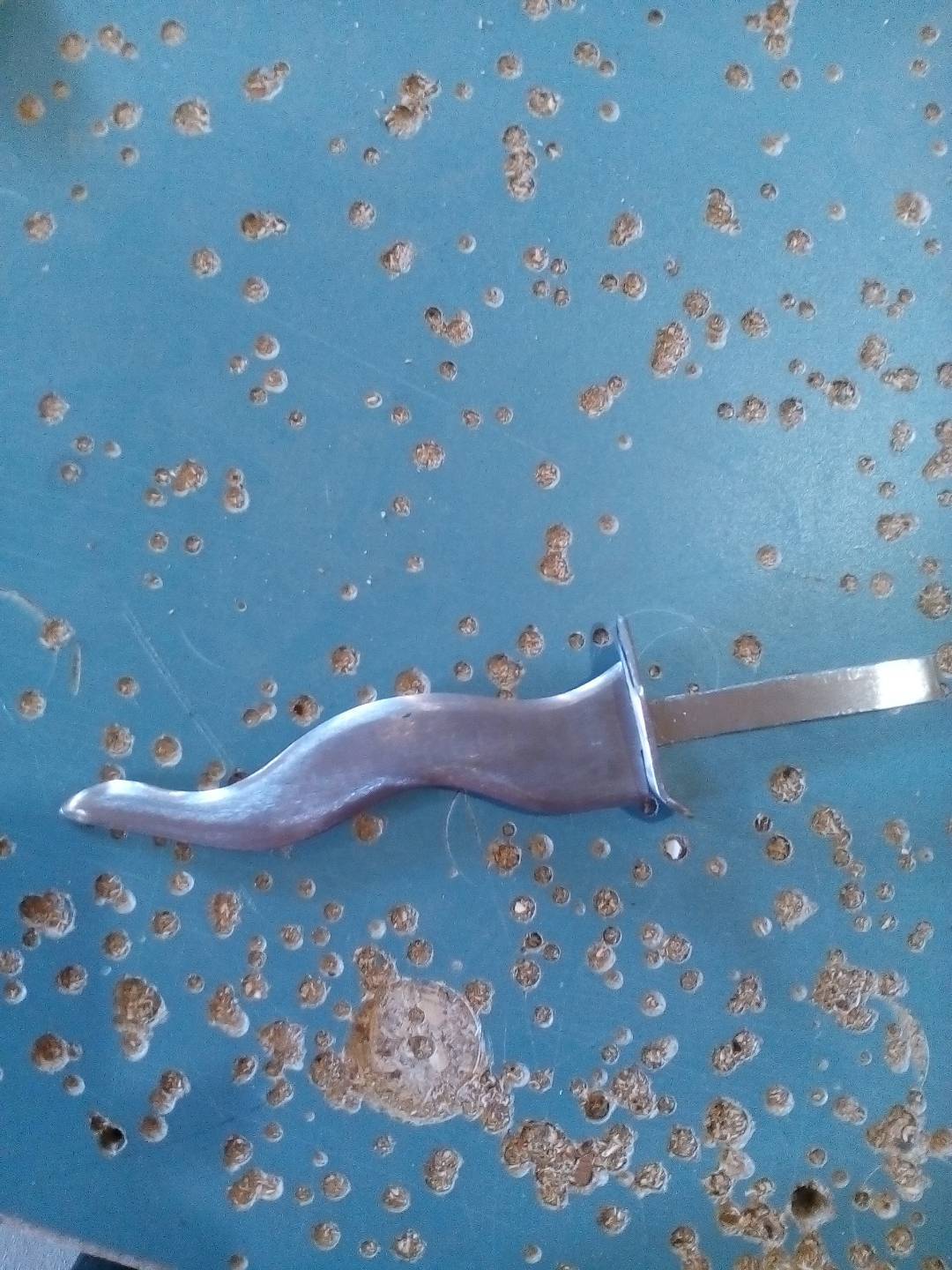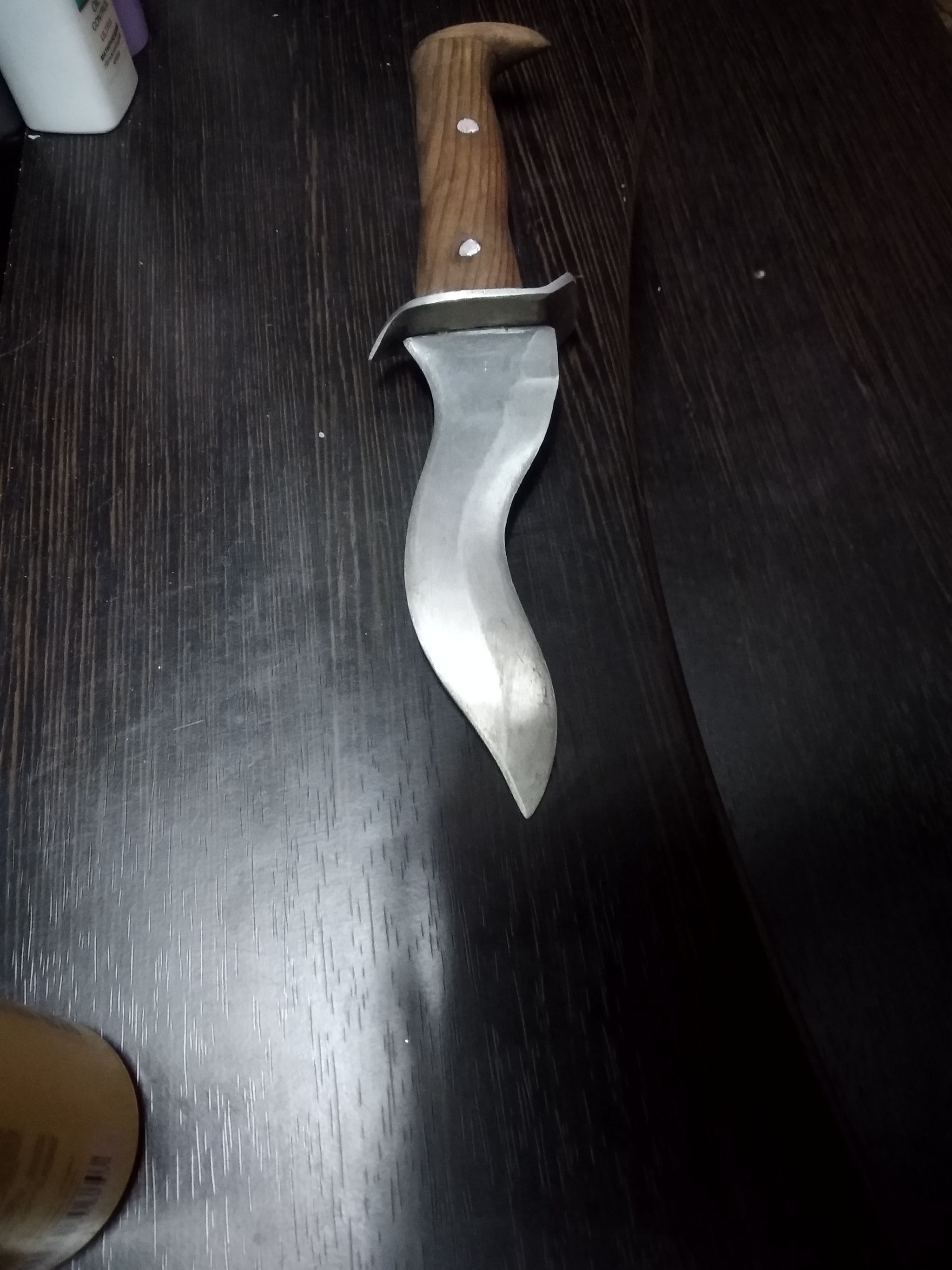 Начитавшись однажды Ваших постов, решил сделать нож (понятия не имел как это делать). Взял рандомную железяку и рандомный кусок дерева, которые обнаружил у себе в цехе (мебельных цех) и сам я ДСП-шный мебельщик без скилов по дереву. К чему собственно веду...сделаль вот такое что-то неведомое, но очень хотелось жертвенный нож. Подскажите, стоит ли развивать данное начинание как хобби или оставить это дело? Из инструментов подходящих была только болгарка и шлифмашинка. Фото непотребства прилагаю.