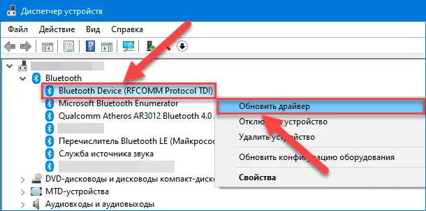 В представленном списке открывшейся отмеченной строки щелкните правой кнопкой мыши требуемое устройство и откройте всплывающее контекстное меню, в котором, из списка разрешенных действий, выберите раздел «Обновить драйвер».