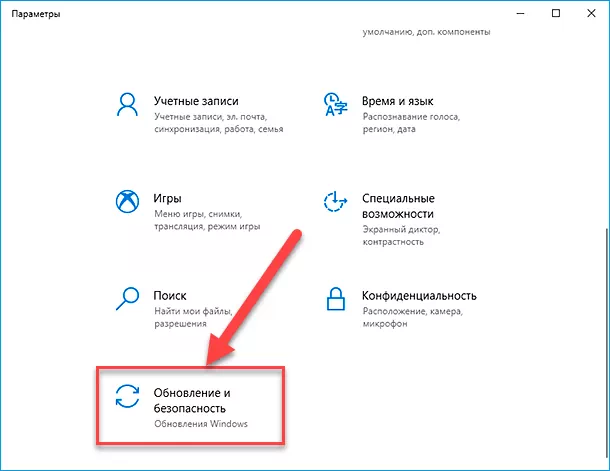 На главной странице приложения «Параметры», содержащей организованный список доступных настроек операционной системы, применяя ползунок полосы прокрутки или колесо вращения компьютерной мыши, перейдите в самый конец предлагаемого перечня и выберите вкладку «Обновление и безопасность».