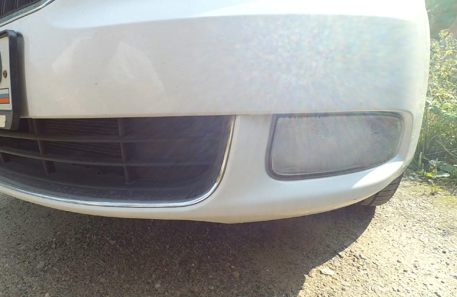 Так туманка выглядела после заплыва. Помимо тотального запотевания, на фото виден уровень воды, который все равно остался в фаре, несмотря на дренажные отверстия.