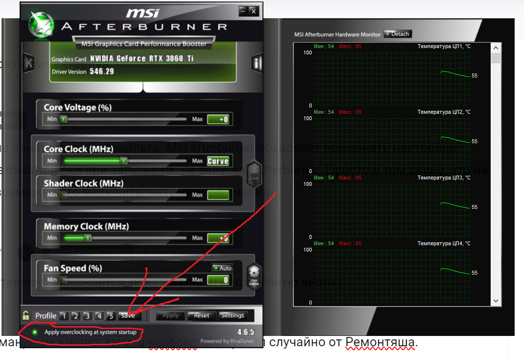 Дело в том, что Msi Afterburner, через который это делается, запускается сразу в свёрнутом виде и визуально его можно увидеть только в трее.