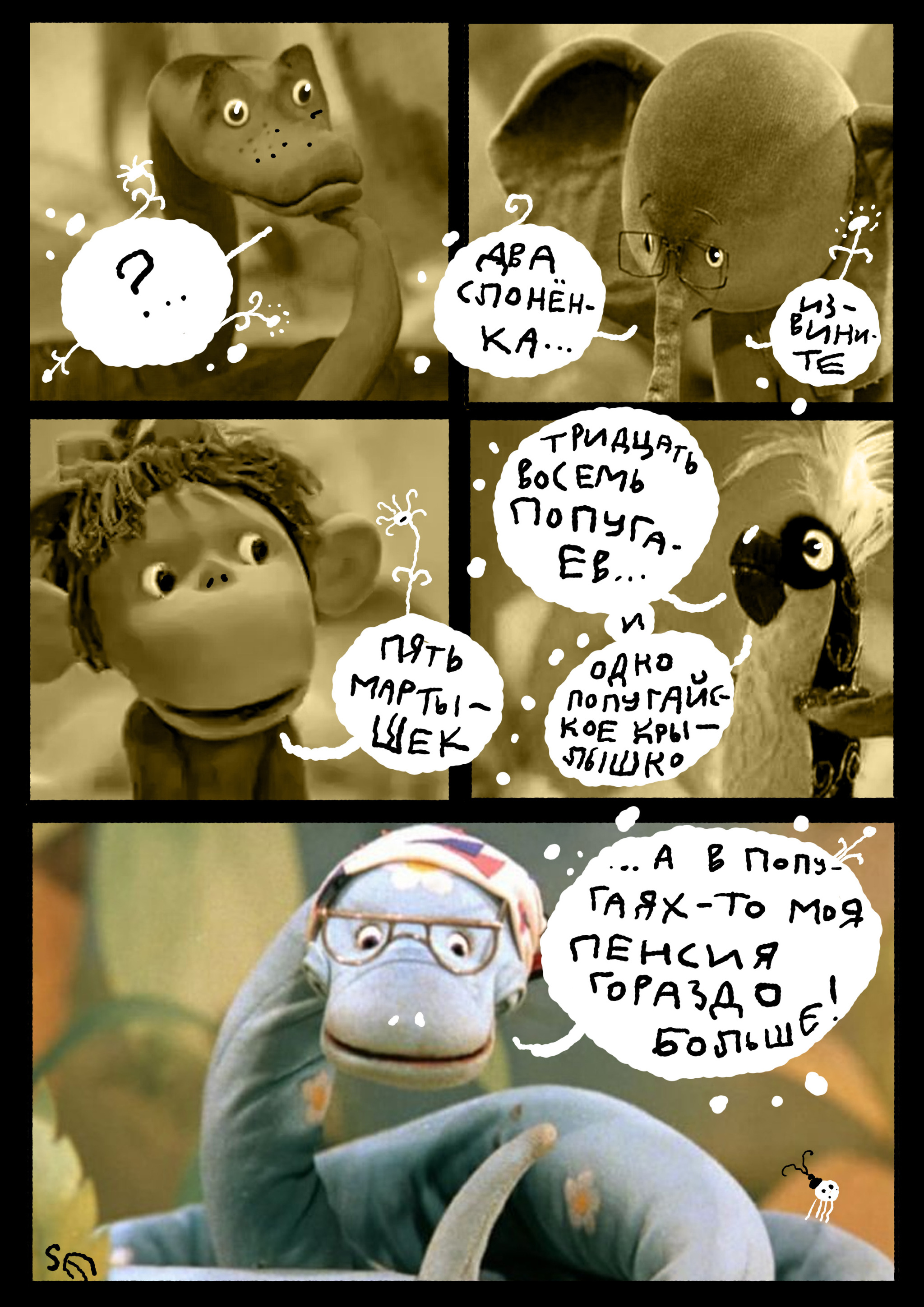5 Selivanof Как правильно считать пенсию, чтобы не сильно расстраиваться. Руководство для пенсионеров 11 месяцев назад [моё] Комиксы Авторский комикс Пенсия Пенсионеры Пенсионный фонд Пенсионный возраст Сатира Россия Мультфильмы Советские мультфильмы 38 попугаев (мультфильм) Ещё 0