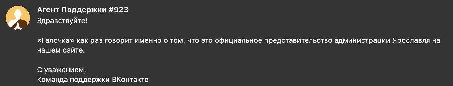 Поддержка Вк подтвердила, что это сообщество является официальным представительством администрации Ярославля.