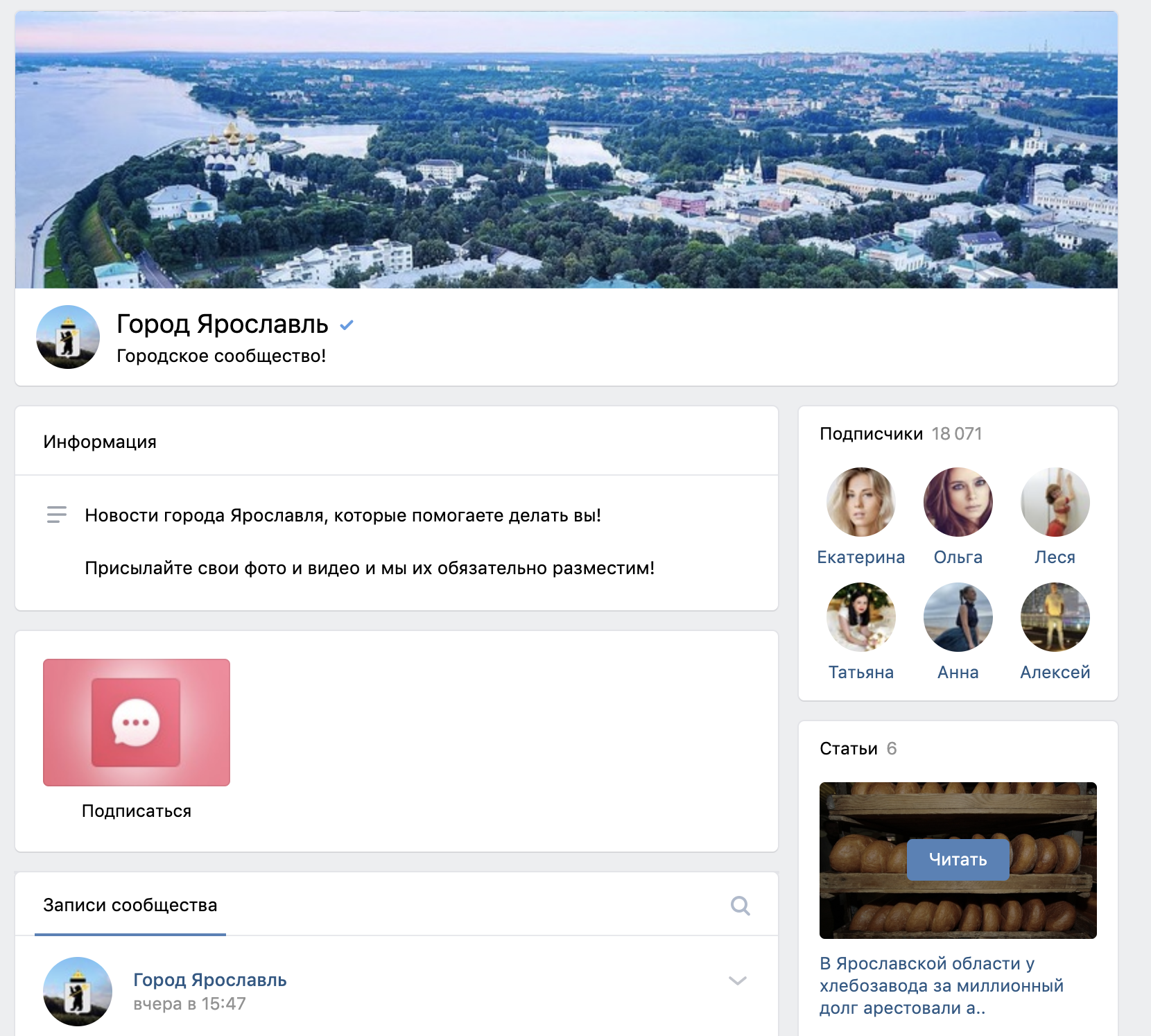 Интереса ради, зашел на официальное городское сообщество города Ярославля в Вконтакте, которое ведётся представителями мэрии города. Еще вчера в нем была галочка верификации, обычные посты с отчетам о проделанной мэрией и губернатором "работе" и... куча рекламы всевозможных салонов, магазинов, услуг и прочего. Но обо всём по порядку.