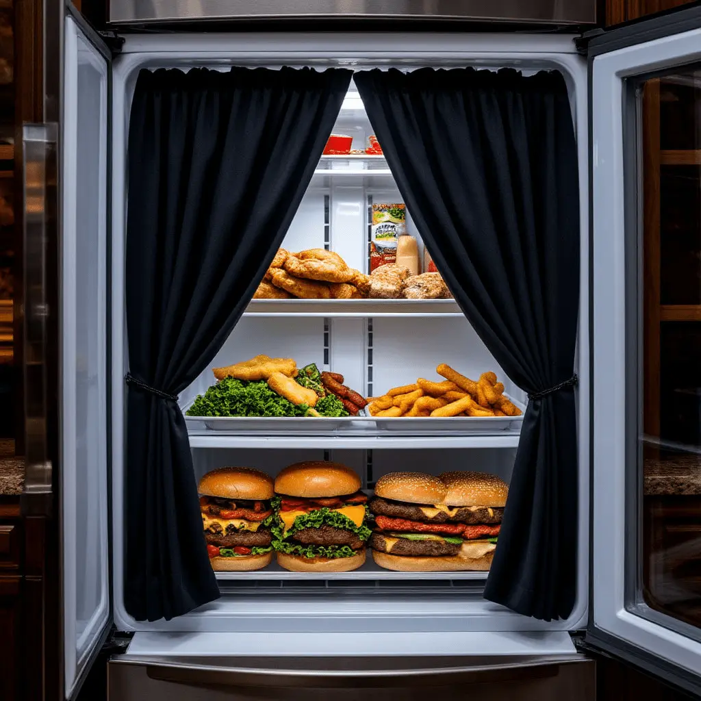 Штора + Холодильник = Сделать шторки внутри холодильника, чтобы прятать жирную еду на ночь
