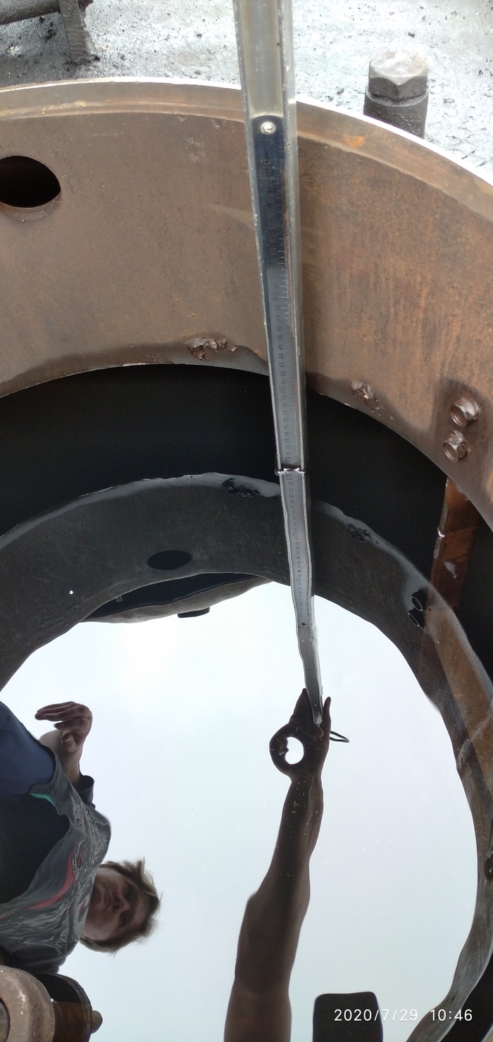 Производится замер взлива нефтепродукта при помощи поверенного в центре стандартизации метрологии и измерений, метрштока