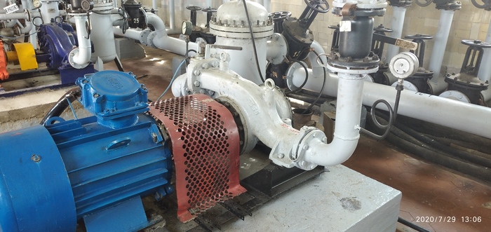 Перекачка топлива от сливной эстакады до приемной емкости склада осуществляется посредством перекачивающего насоса. У нас насос марки ЦСП-57, установленный в насосной станции склада, оборудован 3-х фазным асинхронным двигателем, защитным кожухом муфты привода насоса (от дурака) 2-мя манометрами, один на разряжение со шкалой -1;9, задвижками ну или шаровыми кранами, фильтром сетчатым.(на заднем плане) Фильтр нужен для того что бы в насос, на крыльчатку рабочих лопастей не попали постороние предметы, которые могут быть в Жд цистерне. На моей памяти это были, гайки, куски кирпича, однажды при обслуживании вытащили кусок рукава от куртки рабочего.