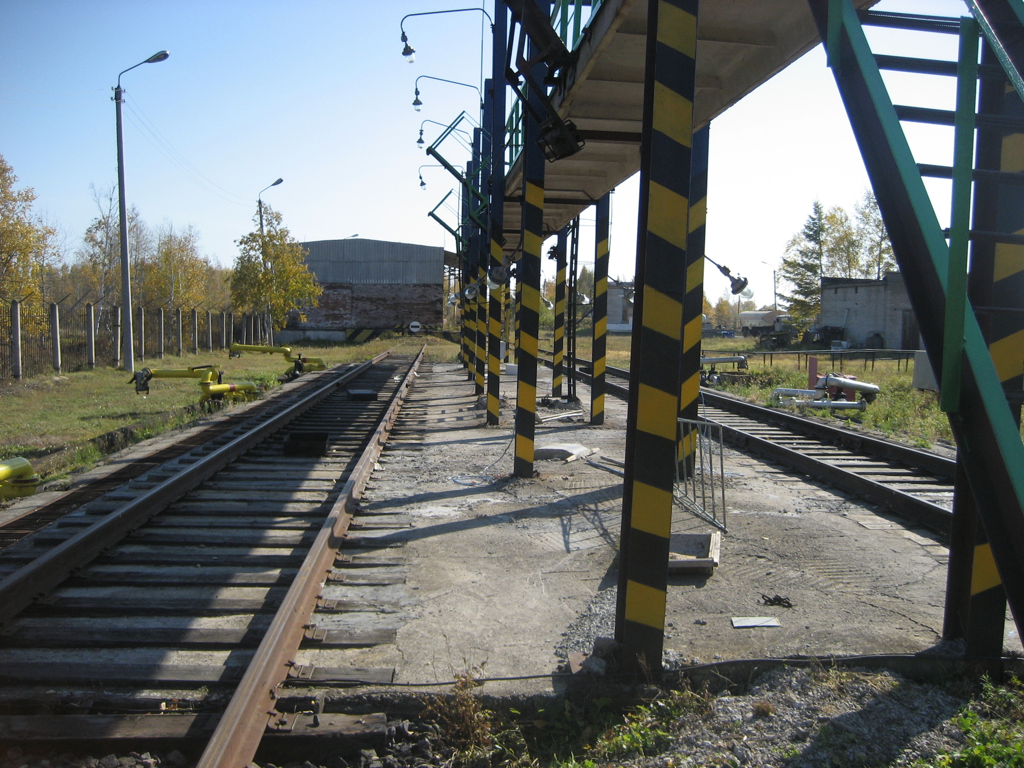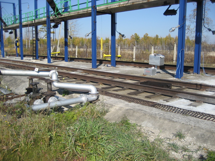 Для слива нефтепродукта из железнодорожных цистерн используется ЖД эстакада слива. Она может быть на 3 и более вагонов. Железобетонная конструкция, оборудования отпускными мостками на вагон, общим заземляющим контуром, освещением если слив производится в темное время суток, задвижками и специальными сливными устройствами. В нашем случае это УНС-7б
