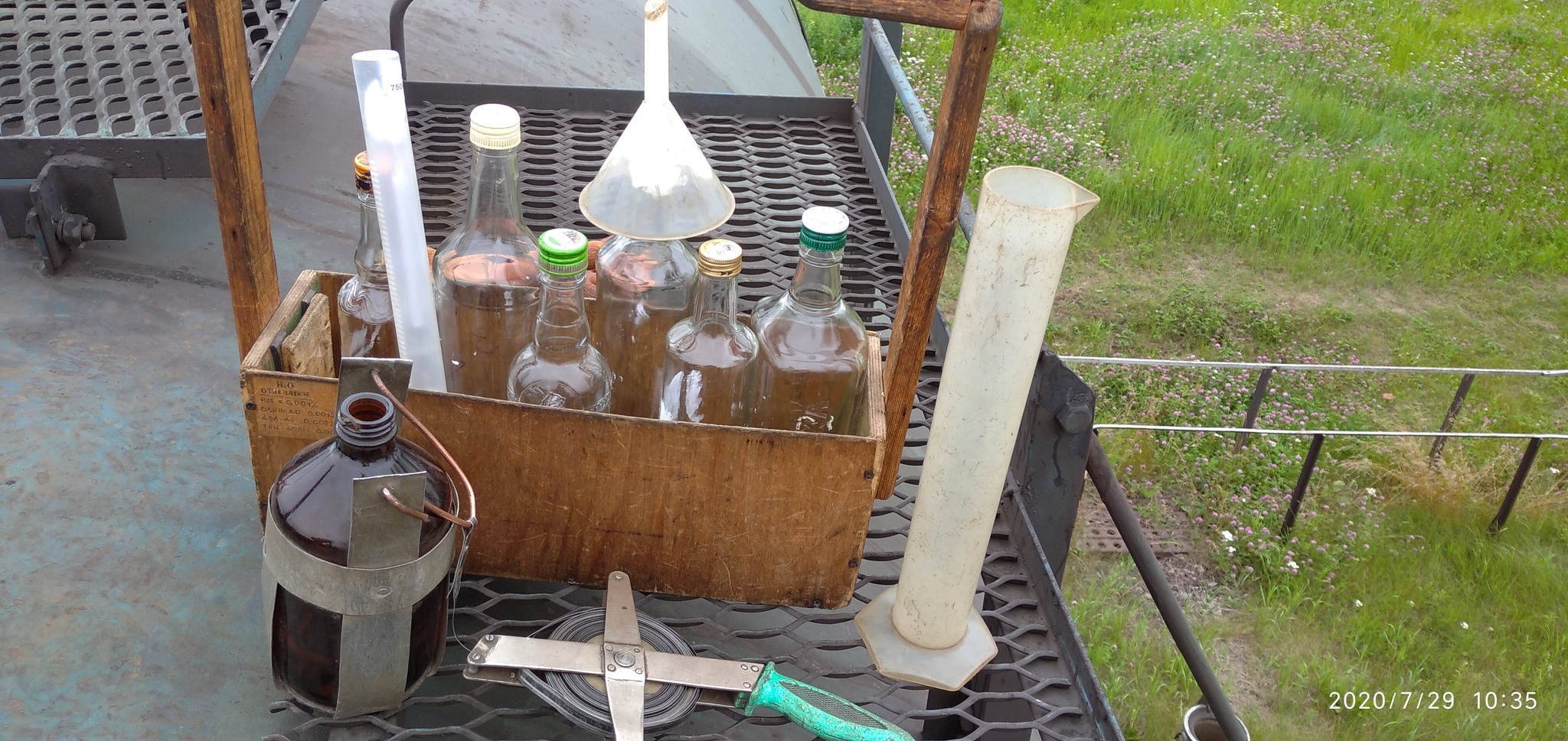 На фото, самопальный пробоотборник( им шустрее работать) ареометр, цилиндр и бутылки для отобранного нефтепродукта