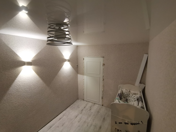 Кстати со светильниками сильно пролетел, они без выключателя и я не был готов к этому, ибо вывел только питание, а коробка уже была под обоями, поэтому пришлось купить шнурки, как в бра и монтировать в оба светильника, получилось годно, если будет интересно как, могу отдельный пост выложить. На сегодня пожалуй все, если будет интерес, выложу как и из чего делал подиум, во всех подробностях, опытные мастера не судите строго, и филологи тоже 😊