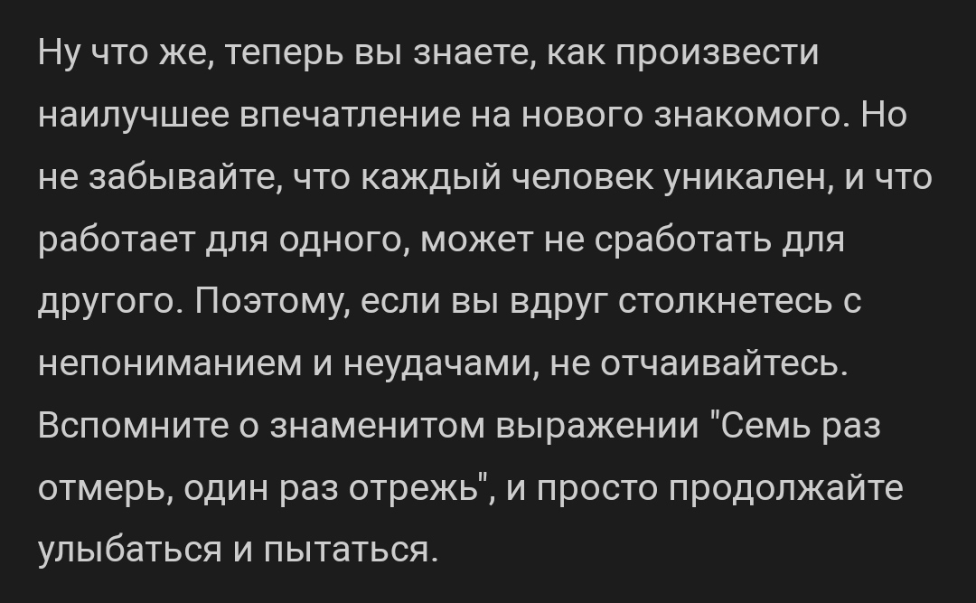 ifbest.org Психология | Psychology Как произвести хорошее впечатление на человека?1 2 года назад Источник: Как произвести наилучшее впечатление на нового знакомого: полезные советы и приемы. Психология Впечатления Длиннопост Ещё 0
