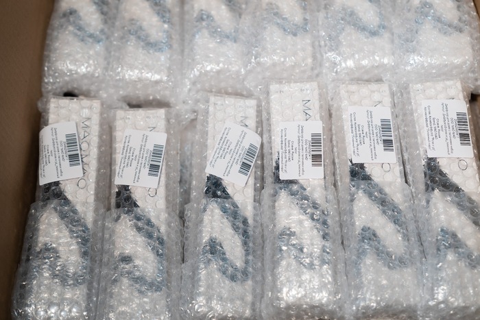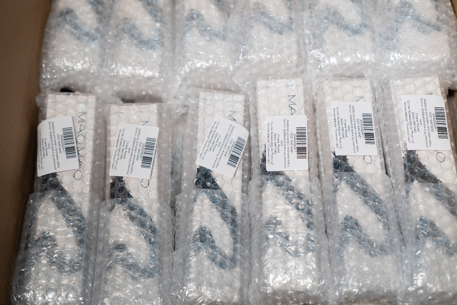 Остается все запупырить, приделать стикер, запаковать в коробки и отправить на склад, откуда их переправят на склады маркетплейсов.