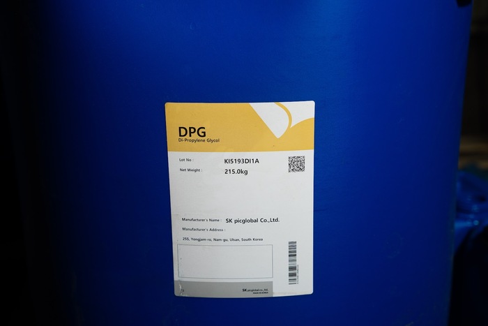 В качестве основы большие бочки с дипропиленгликолем. Спасибо Южной Корее за 215 кг этой бесцветной жидкости в каждой бочке.