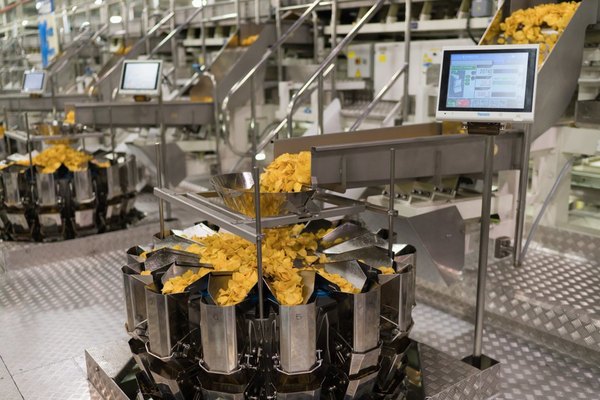 На нанесении приправ процесс приготовления чипсов заканчивается. Ломтики сначала поступают на весовой дозатор, а затем масса подаётся в раскрытый пакет, который выглядит как рукав. Формер заполняет пакет азотом и запаивает: так продукт может храниться долго и не портиться. Время приготовления одной партии чипсов — чуть меньше часа. После упаковки пакеты складываются в коробки и отправляются на склад, откуда они поступают в магазины России и стран СНГ.
