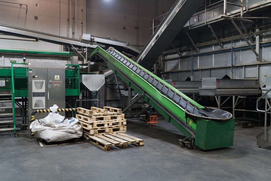 Картофель по конвейерной системе поступает в бункеры-бины, где происходит первая стадия сортировки — чистка от ростков и земли. Клубень картофеля должен быть от четырёх до девяти сантиметров в диаметре, поэтому совсем мелкие клубни бракуются, и машина отбрасывает их в отдельный мешок. Таких бинов на заводе всего восемь, каждый из них может вместить в себя 40 тонн картофеля, которые полностью перерабатываются за четыре часа.