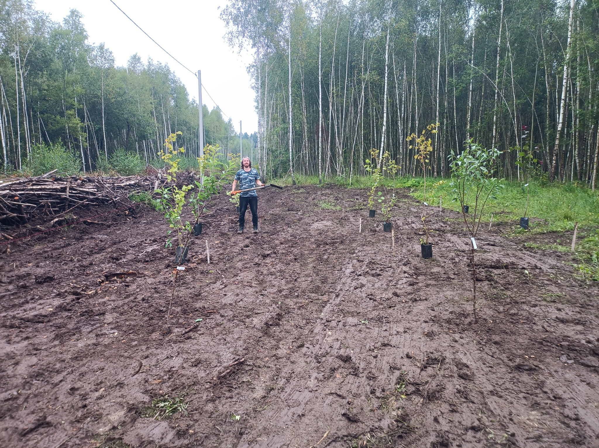 Вчера мы продолжили начатое при помощи экскаватора, который убрал пни и выровнял грунт, после чего осуществили мечту сына - заложили ореховую плантацию. Пока экспериментально, 18 кустов, но если они переживут зиму, мы будем увеличивать количество до 52 стволов.