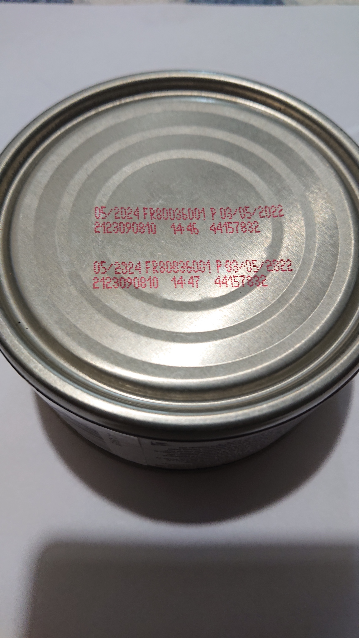 Далее фотографии самой подозрительной банки корма, на дне которой во второй строчке странно пропечатаны цифры "0".