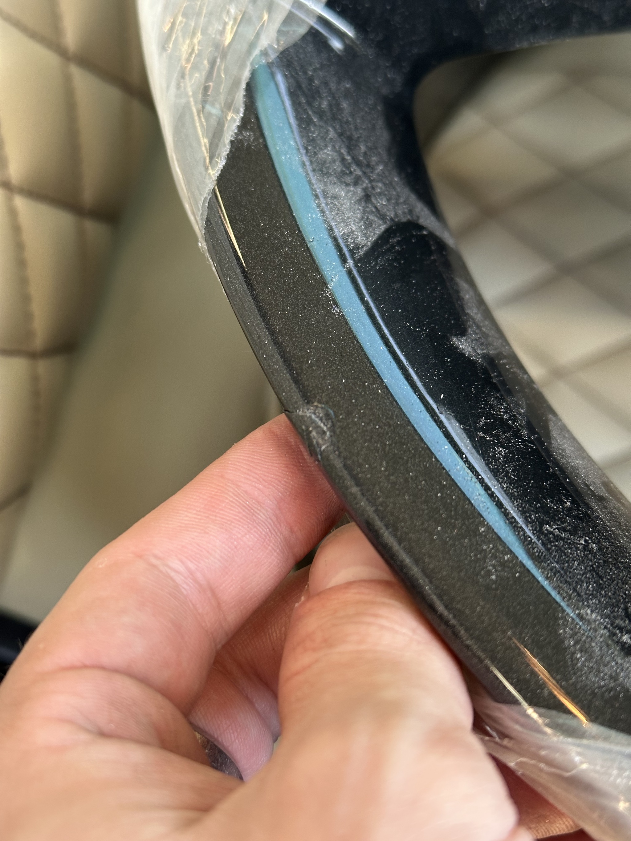 До отправки груза этого скола точно не было, тем более что место повреждения диска совпадало с порванной защитной пленкой. И таких содранных участков пленки по всей окружности диска было достаточно, но они не были настолько критичными. По ощущениям этот кусочек отвалится довольно скоро. Сам надламывать его я не стал.