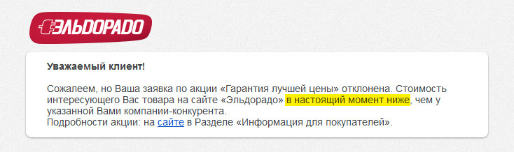 Как работает акция «Гарантия лучшей цены» у Эльдорадо.